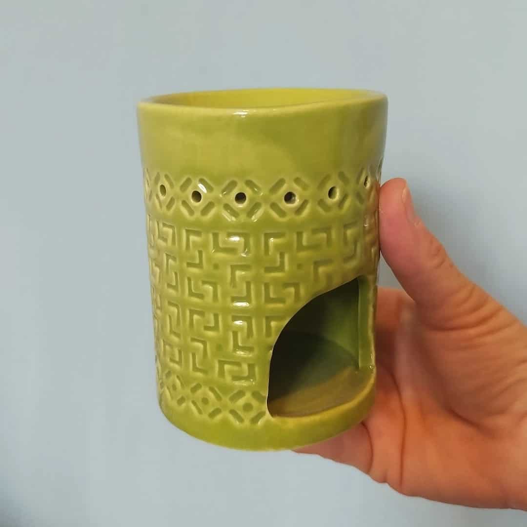 מבער קרמיקה להדפת שמנים. שימוש במבער זו אחת הדרכים הנפלאות לעבוד עם ארומתרפיה ושמנים אתרים.